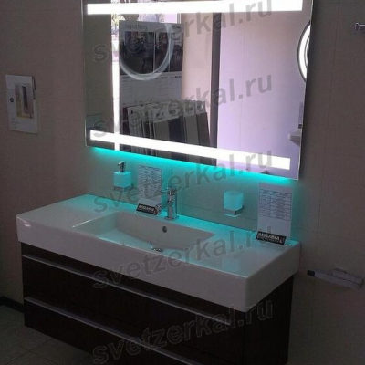 У нас можно купить зеркало с фоновой, фронтальной, а также двойной подсветкой. Она может иметь холодный, теплый или нейтрально белый оттенок, а также может быть представлена разноцветной комбинацией.